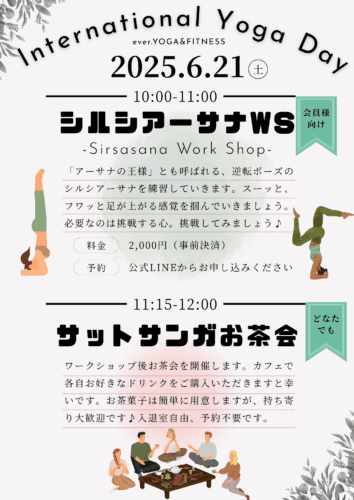 【国際ヨガデー】シルシアーサナワークショップとサットサンガお茶会のお知らせ