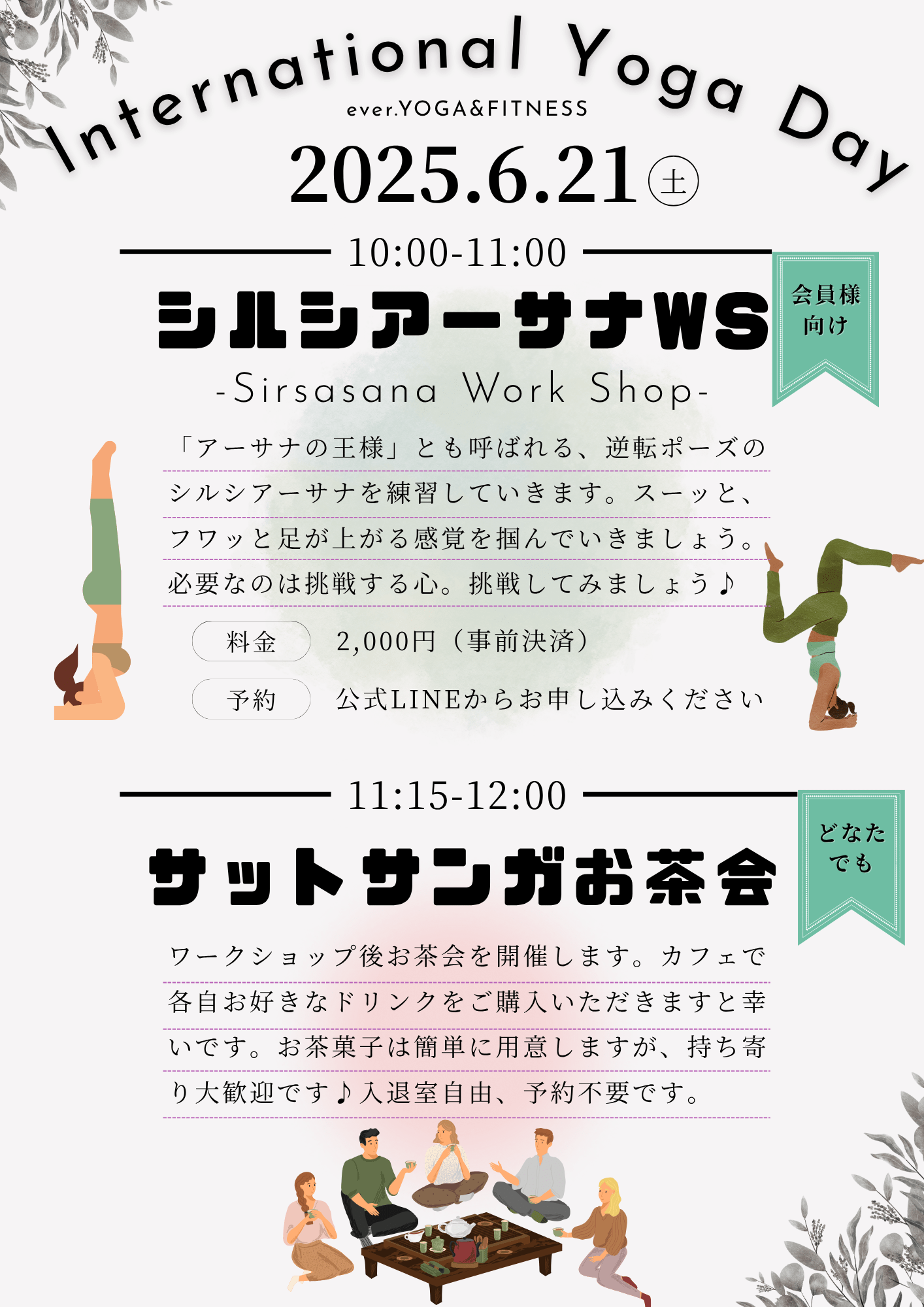 【国際ヨガデー】シルシアーサナワークショップとお茶会のお知らせ