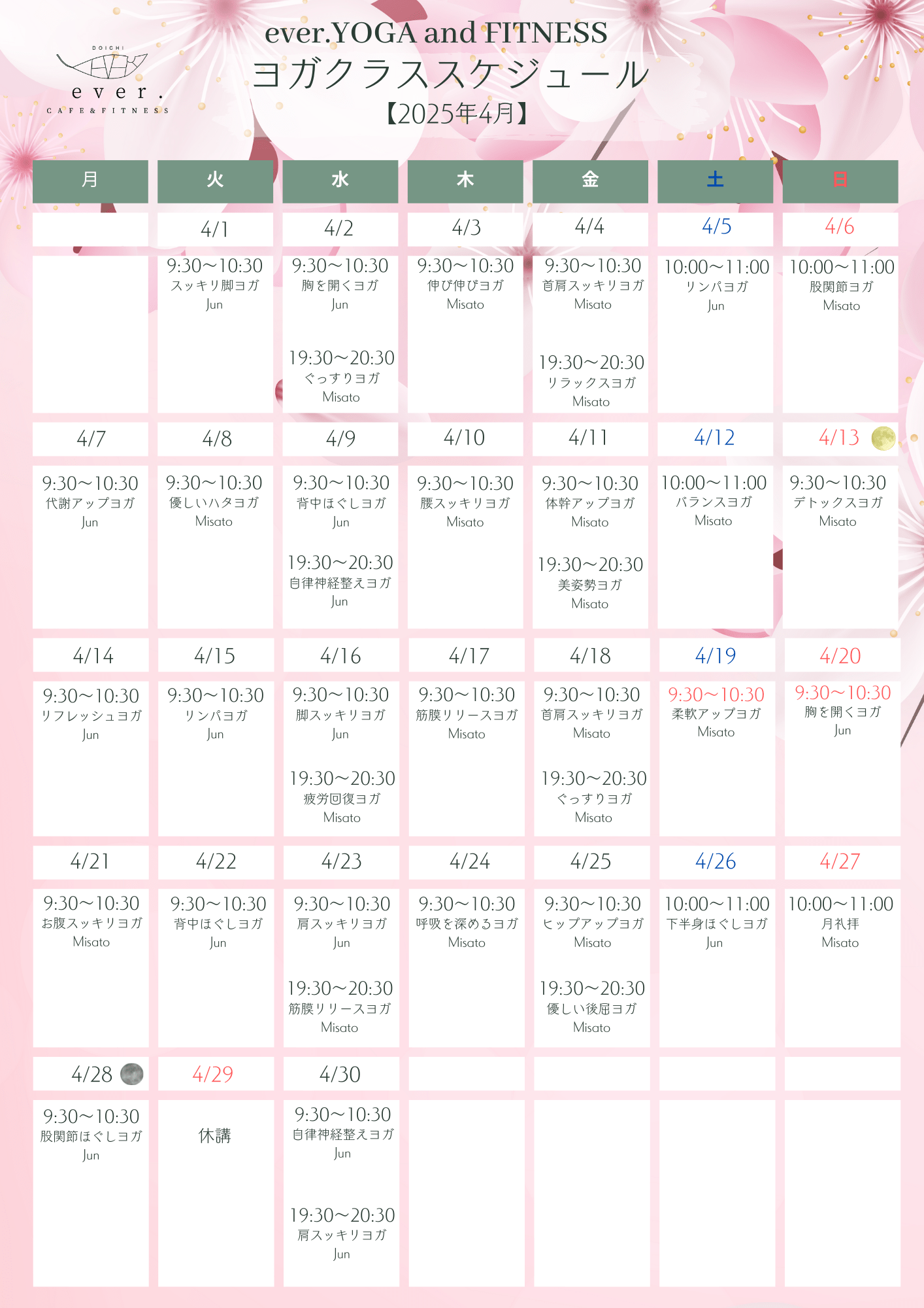 202504ヨガクラススケジュール