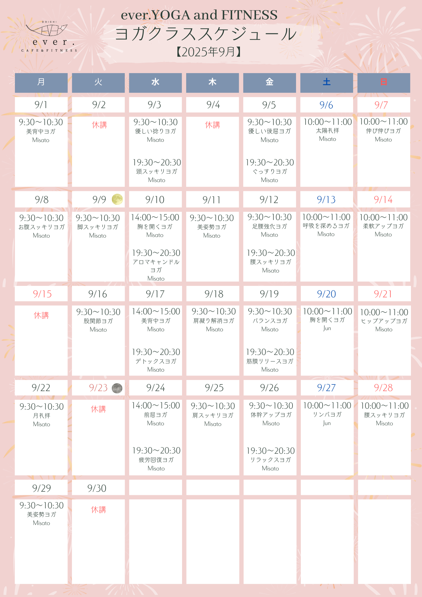 9. ヨガクラススケジュール