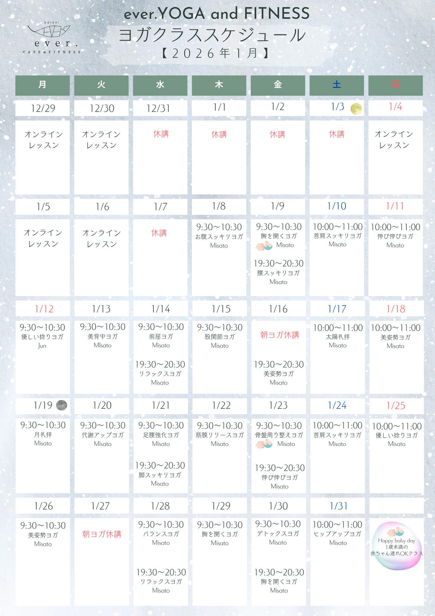 1月ヨガクラススケジュール