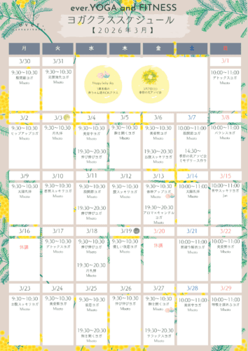 また花粉も飛散し始めているようです。季節の変わり目でも体調やメンタルが揺らぎやすい時期です。ヨガで呼吸と共に体をほぐして、芽吹の季節を楽しむ準備をしていきましょう。