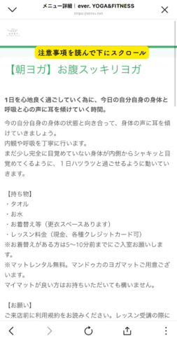- 体験レッスン当日に月会員(月2回・月4回・通い放題)へご入会していただくと、①2週間通い放題プレゼント②体験料1500円が無料③ヨガウェア半額クーポンの特典がついてきます。当日月会員の手続きをしますが、2週間経過後に決済開始となります。