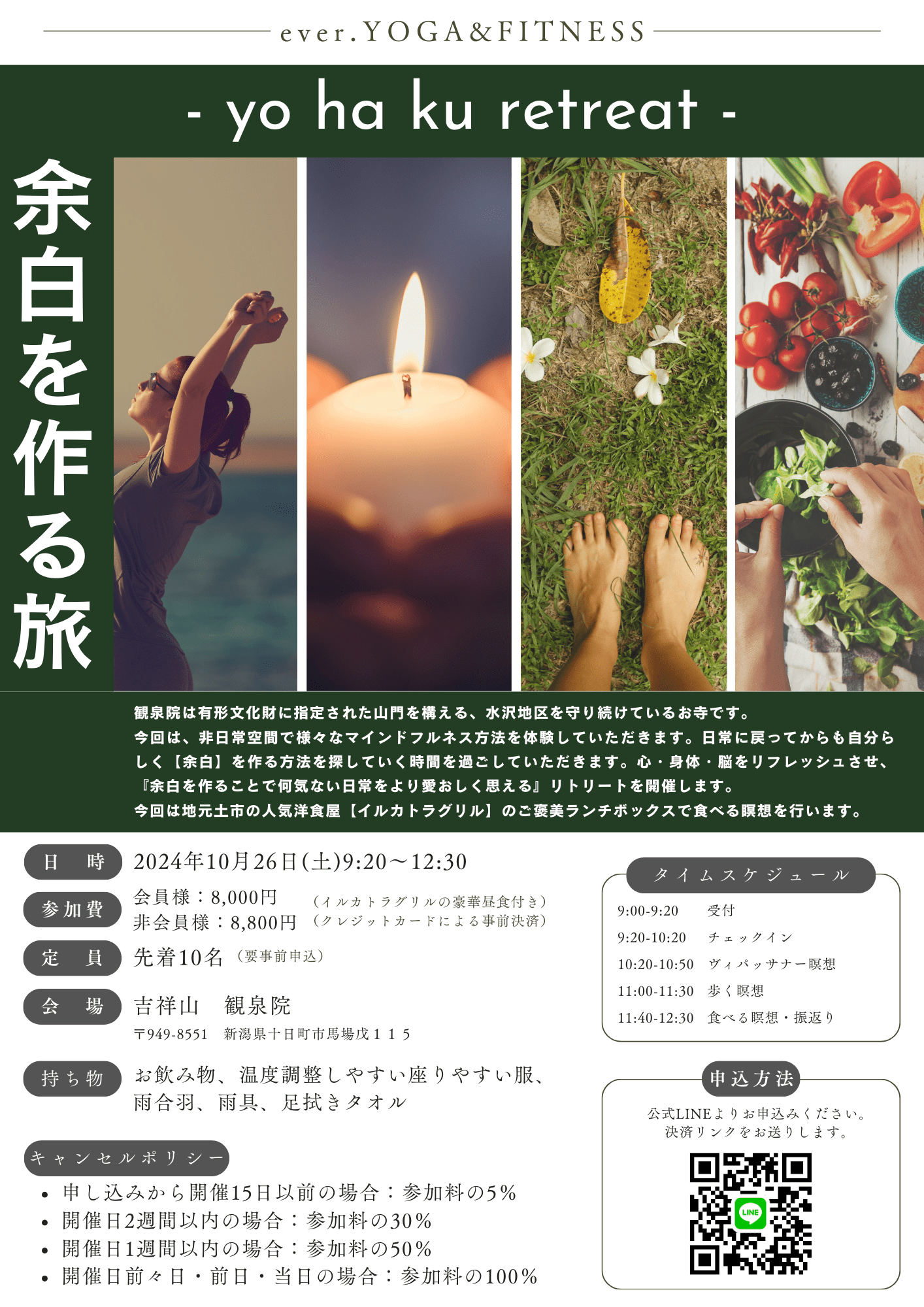 10月26日(土)ヨハクリトリート@観泉院開催のお知らせ